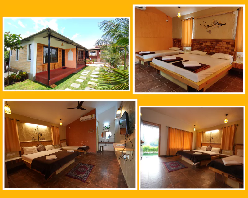 Our resort which is one of the best resort near Pune offers a range of accommodations to suit every need, from cozy cottages to spacious rooms. Each room is equipped with modern amenities such as air conditioning, and flat-screen TVs, delightful interiors ensuring that you have everything you need for a comfortable stay. Whether you're traveling solo or with your family or friends, we have the perfect room for you. Plus, you don't have to worry about staying for multiple days or one day, as we offer day resort options near Bhor as well.